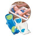 Anatomical design provides support for baby's body allowing it to kick and splash. Soft inserts offer extra comfort and support to baby's head and bottom. Suction cups at the foot of seat attach to bathtub or sink (not suitable for non skid surfaces. Smooth, hygienic non-absorbent plastic. Safely cradles a small infant from birth to 7 months (max. Wt. 17lbs/28" long).