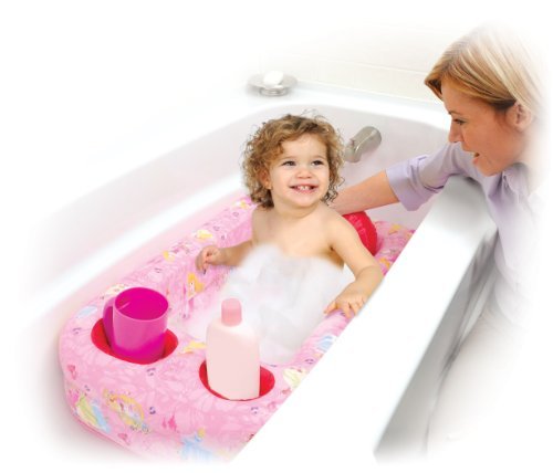 She is always attracted to princess stuff. She didn't really seem to notice the style of this. But she laughed when we put her in it. Even though it was close to bedtime, she played in it for 20 min. In her whale tub we got her for her infancy she was really limited in movement. Since she's a good sitter we needed something else. We only fill it about an inch with water (it gathers around her weight when she sits). It really cuts down on water compared to a full tub. It stays warmer than a full tub. It travels easily and inflates fast (even just blowing into it). We have to keep our hands on her at all times as she can faceplant or scoot down if not watching. She'll have this tub for a good while until she's ready for the full experience.