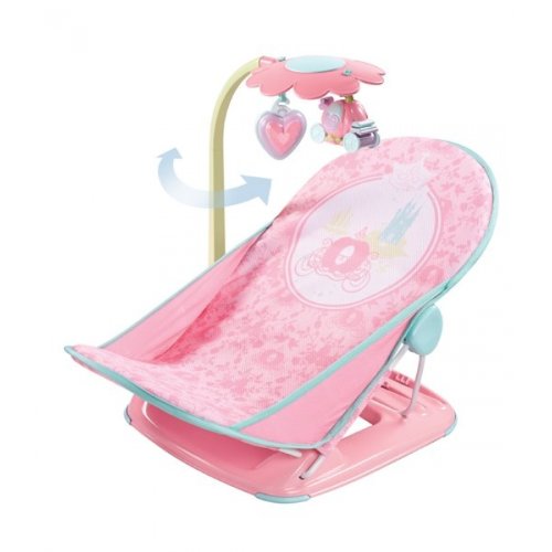 Turn bathtime into playtime with this fun Disney bather! The quick-drying mesh backrest adjusts to 3 separate positions for baby's comfort. Two squeezable water toys and a handy mirror are attached to the swing-away activity bar. Convenient features include a compact storage design and quick-drying mesh fabric. Birth to 2 Years Made in China